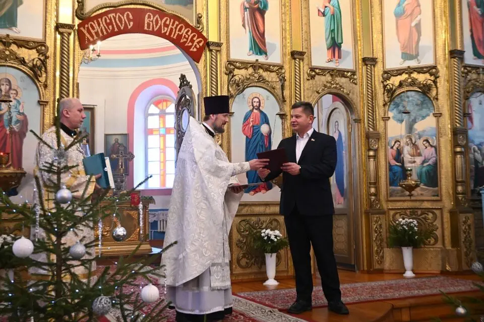 Александр Диваков посетил Свято-Троицкий собор и поздравил жителей Хотимщины с Рождеством Христовым