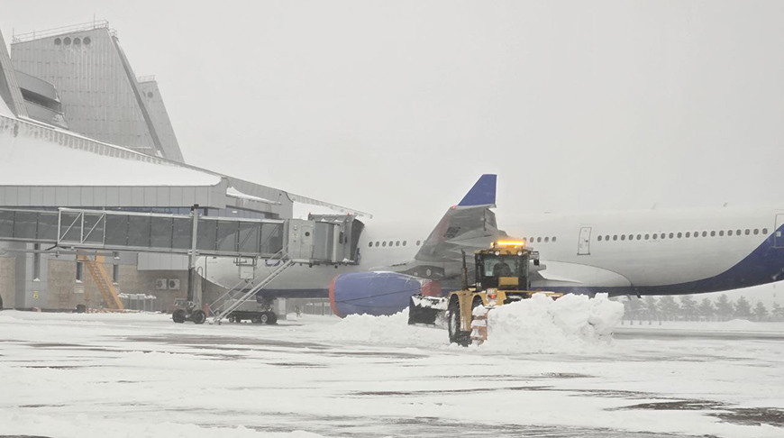Службы Национального аэропорта Минск работают в усиленном режиме в условиях снегопада