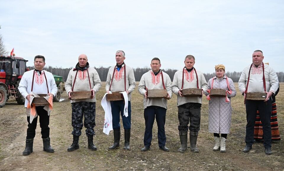 Кульминацией славных обычаев стал символичный обряд: во главе с Александром Диваковым руководители сельхозпредприятий посеяли первые зерна.